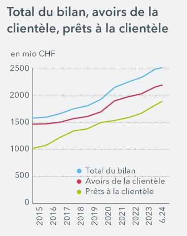 Les avoirs de la clientèle – obligations de caisse comprises – ont augmenté de 1,2 pour cent par rapport au 31.12.2023, pour totaliser 2,191 milliards de francs. Les actifs sous gestion se sont élevés à 3,027 milliards, soit 12 pour cent de plus qu’en 2023. Les investissements dans le fonds ABS Living Values – Balanced Fund ont atteint 107 millions de francs (+10,3 pour cent).