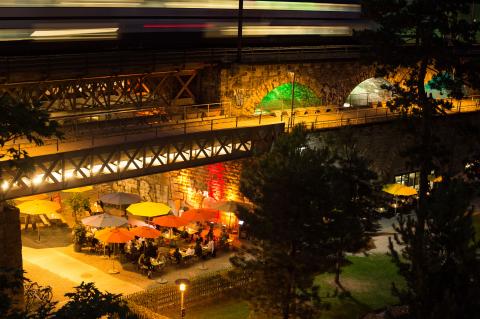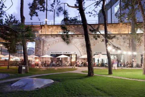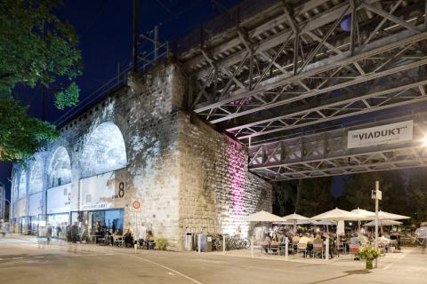 Les vieilles arches du viaduc ferroviaire situé dans le quartier 5 zurichois abritent un grand nombre d'échoppes, ainsi que le Restaurant Viadukt. Il s'agit d'une composante du projet d'intégration par le travail de la fondation Netzwerk für Soziale Arbeit, Sport und Kultur. La cuisine et le service à la salle à manger offrent 25 places de travail encadrées pour des jeunes gens exclus du monde du travail.