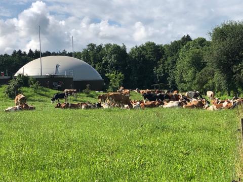 Eric et Gérald Ramseyer sont deux frères agriculteurs à Palézieux (VD) reconvertis dans l'agriculture biologique dès 2012. Pour valoriser le purin de leurs 160 vaches, ceux-ci ont construit une centrale à biogaz, mise en service à la mi-février 2015. Elle produit, depuis, plus de 1 million de KWh / année.